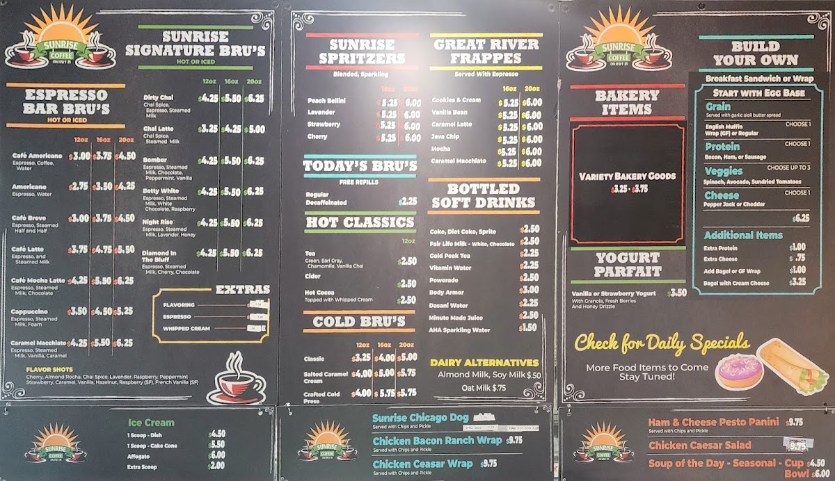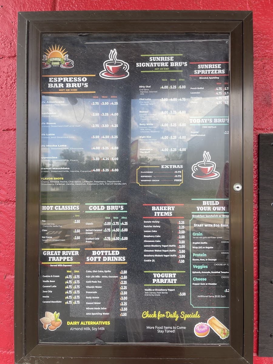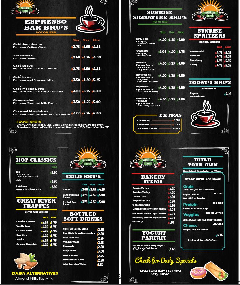 The menu at Sunrise Coffee On 35 in Bay City offers a delightful array of beverages and treats that cater to a variety of tastes. The Espresso Bar features popular choices like the smooth Cafe Americano and the creamy Americano. For a richer experience, try the Café Breve Betty White or the more refreshing Night Rise - both are carefully crafted to bring out the best in every sip.